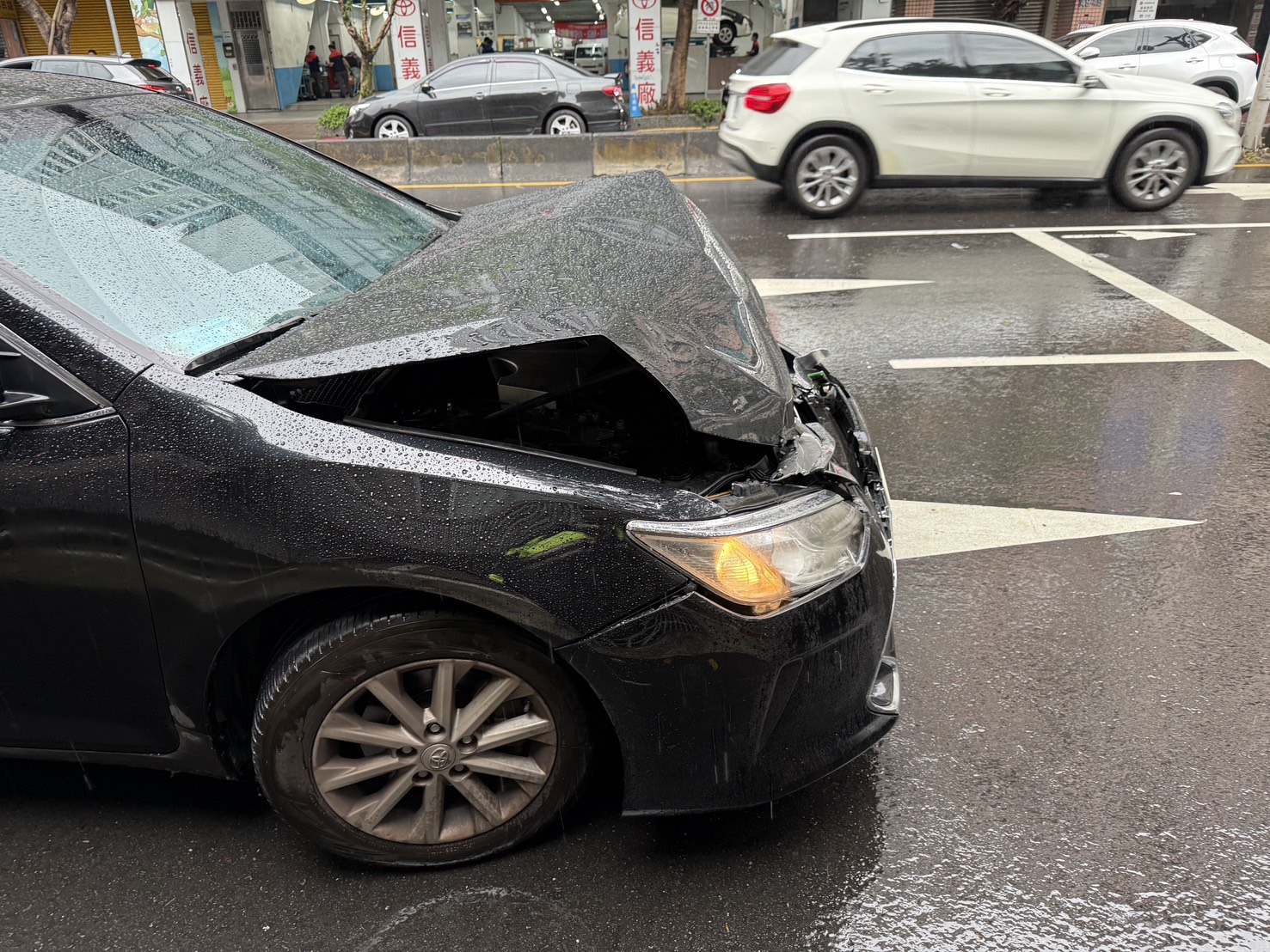 大安分局獲報立即前往處置並啟動交通快打,現場管制基隆路往南最外側車道,並同步通報公園路燈工程管理處派員協助,約1個小時左右迅速排除恢復道路通行。事故造成2部車輛受損,無人員受傷;另檢視無酒味酒容經雙方同意未實施酒測。
