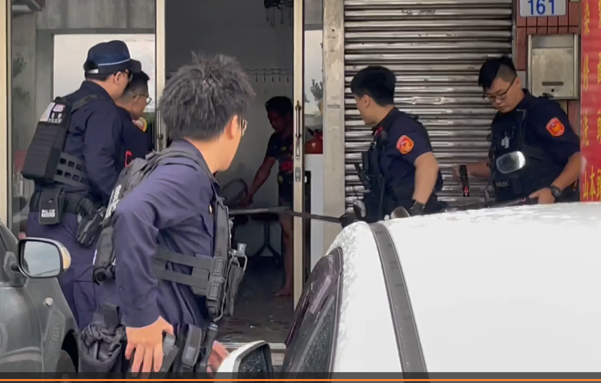 警方圍捕衝入理髮廳頑抗的移工。翻攝畫面