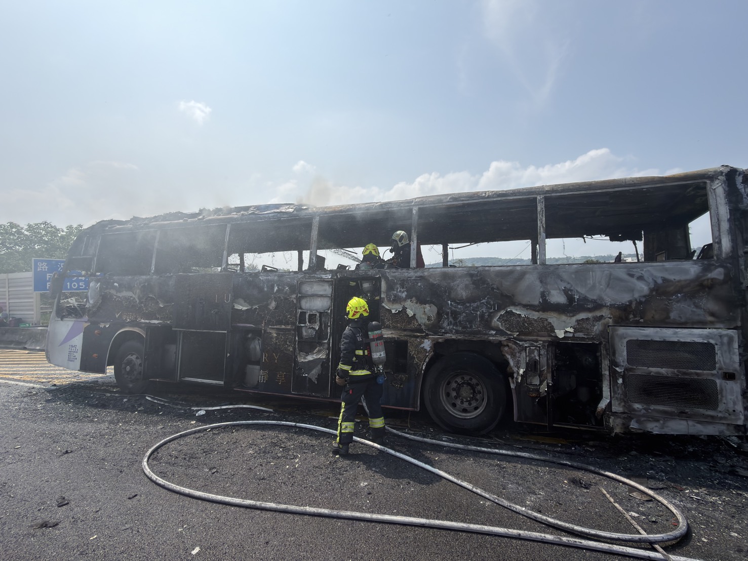 國道1號國光客運失火! 駕駛乘客急逃生