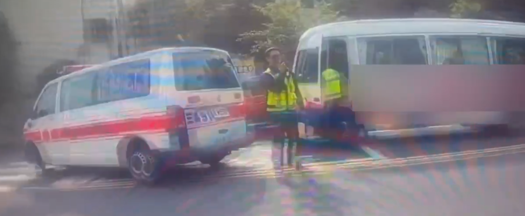 消防隊員駕救護車攔下肇逃中巴報警到場。翻攝畫面