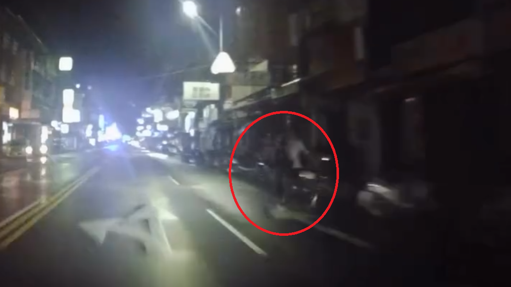 喝醉酒的陳姓男子從路邊衝出砸車(紅圈處)。翻攝畫面