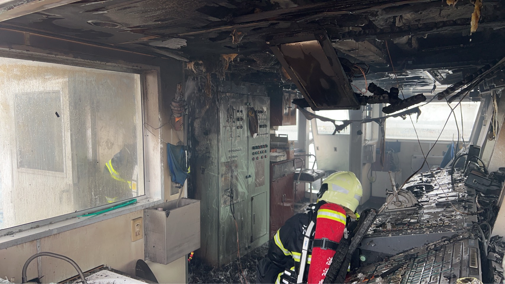 勤務人員到達現場回報,起火貨船為海勝一號(1650噸),所屬公司海盛航運。該貨船1樓為餐廳,2樓為住艙,3樓為駕駛室,1樓餐廳位置有明火冒出,立即部署水線搶救。由於現場火勢猛烈,迅速延燒至2樓住艙及3樓駕駛室。勤務人員同時部署4水線,延伸至各樓層搶救。經全力搶救,火勢於09時00分控制,09時25分撲滅,貨船燃燒總面積約100平方公尺(1-3樓各約30平方公尺,夾層約10平方公尺)。