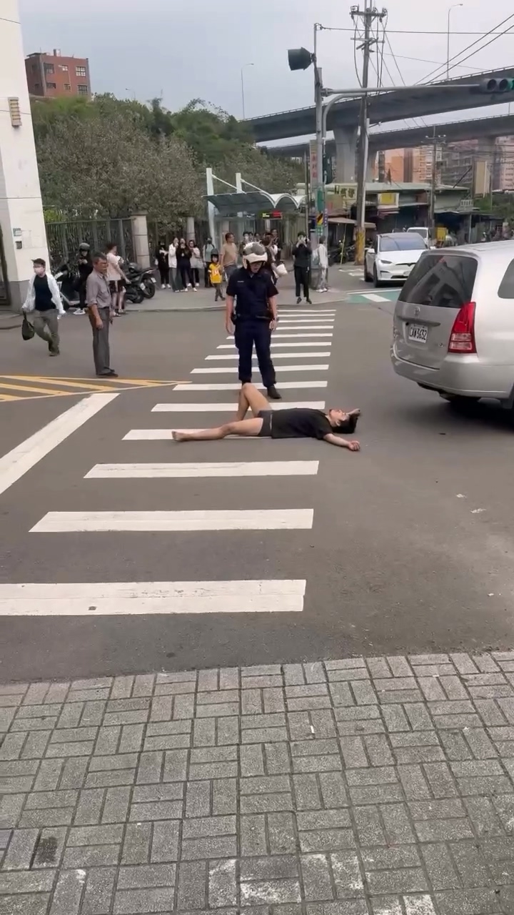 網友在Threads發文指出,在泰山黎明路三段看到,有人攻擊女騎士「看起來是吃壞掉了?」一陣輸出之後就被趕到的警員壓制了。