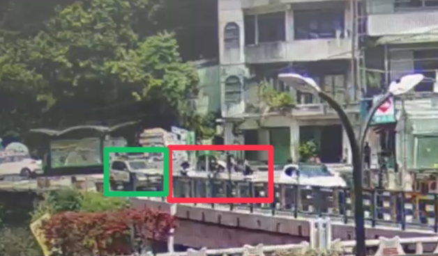 陳姓男子休旅車(綠框)及許姓等三名男子的機車(紅框)。翻攝畫面