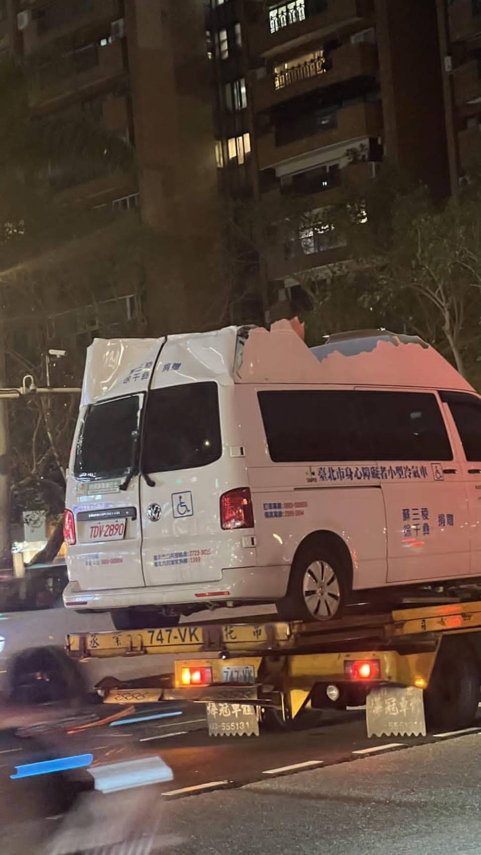 肇事復康巴士車頂炸開成了敞篷車。翻攝畫面