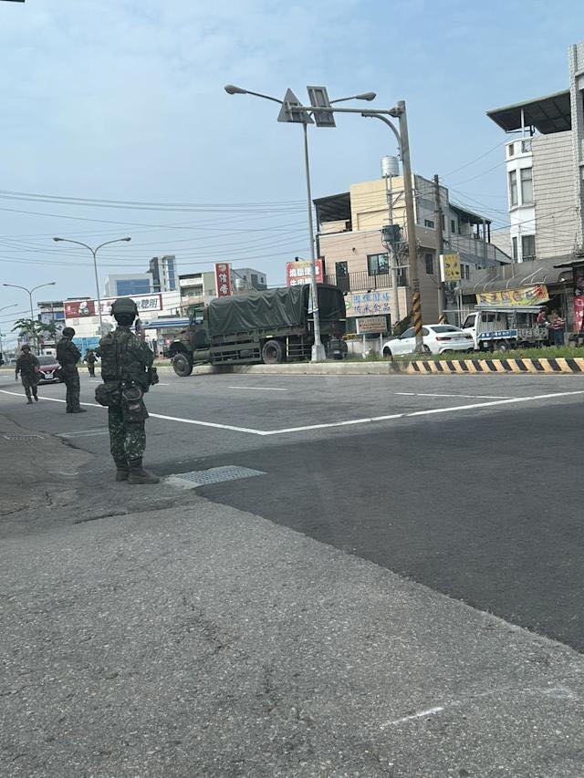 軍方人員在場警戒。翻攝畫面