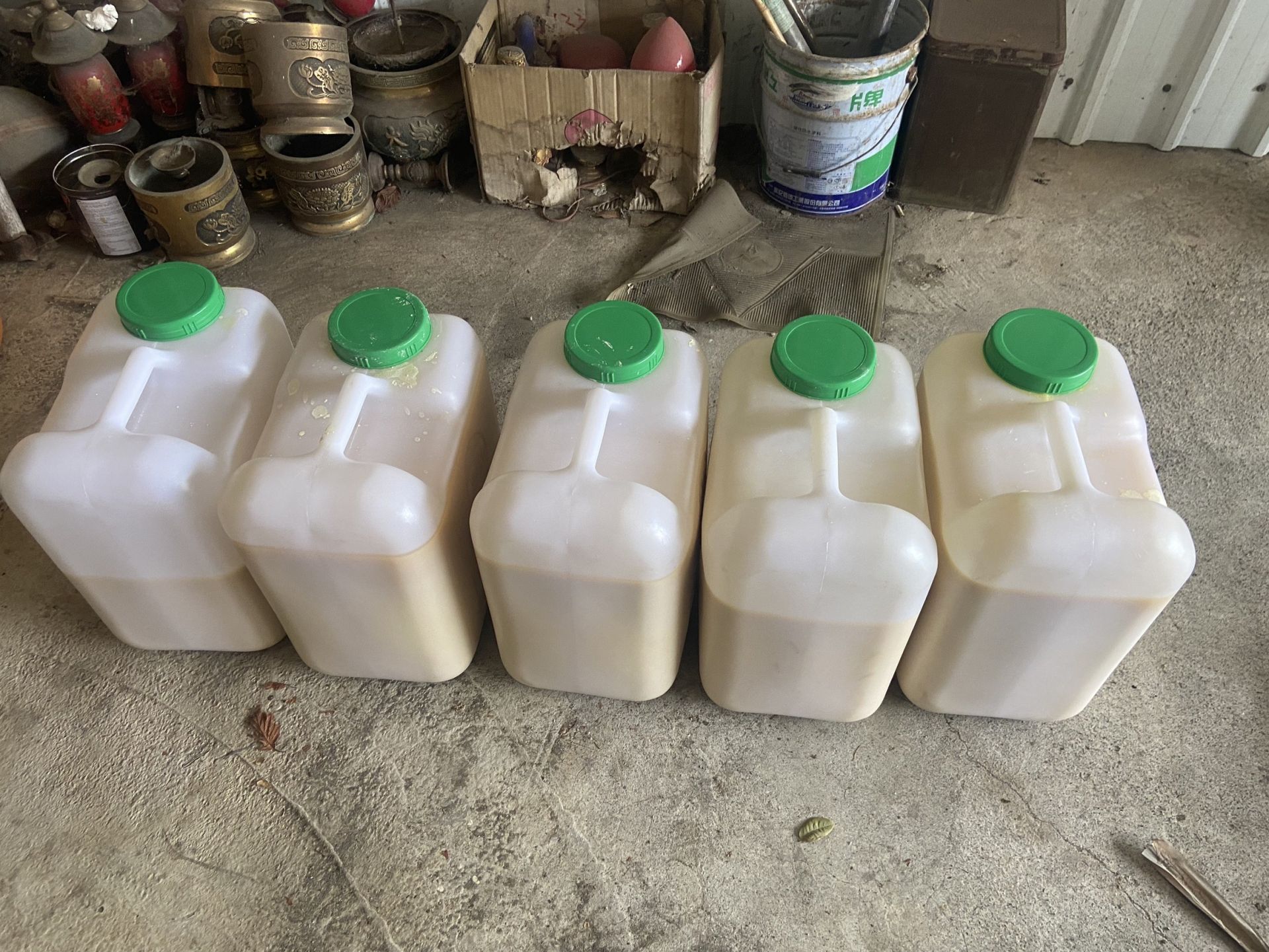 查扣5桶第三級毒品甲基甲基卡西酮(喵喵)半成品121.35公斤。翻攝畫面
