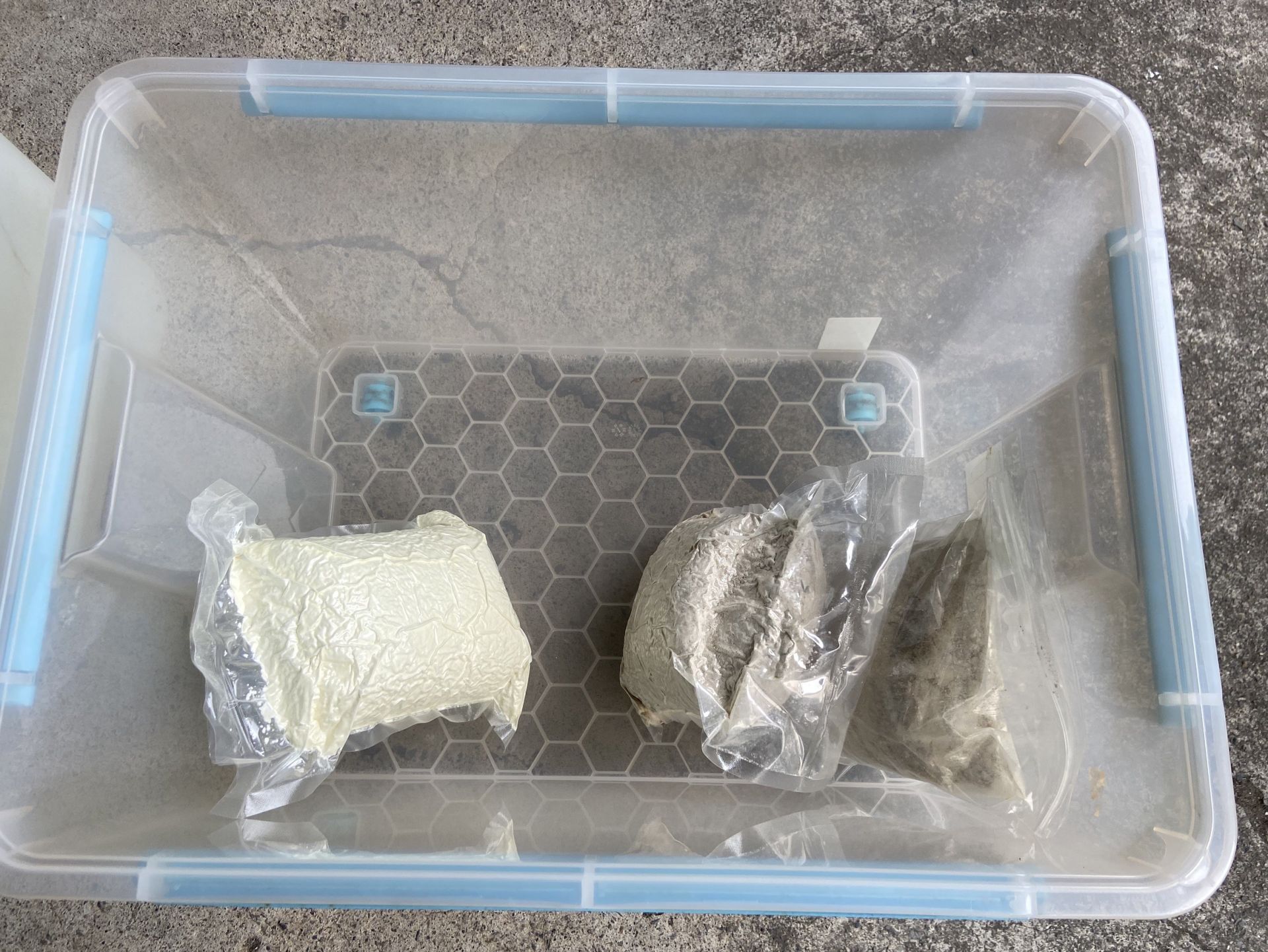 查扣3包已製成第三級毒品甲基甲基卡西酮(喵喵)成品3.02公斤。翻攝畫面