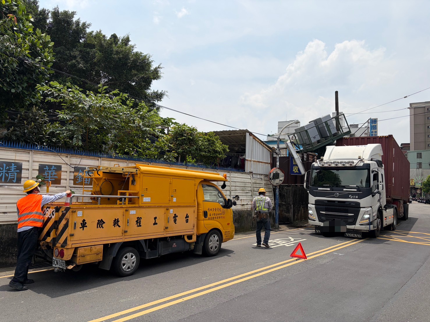 警方獲報立即現場實施交通疏導並通知台電人員到場,台電人員於12時28分抵達現場搶修中,本案無造成人員受傷。全案由本分局新樹派出所實施現場調查、勘查、採證照相及測繪紀錄。新莊分局呼籲用路人,行駛於道路上時,應注意自身車輛之高度,以免導致事故發生。