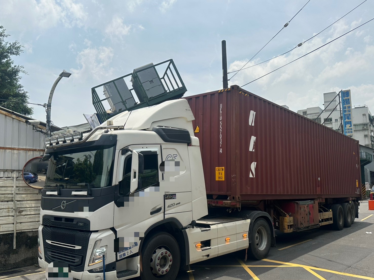 新莊貨櫃車撞爆變電箱。翻攝畫面