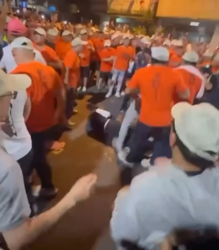 大甲媽遶境行經彰化市爆發暴力衝突,一名員警被推倒。翻攝畫面
