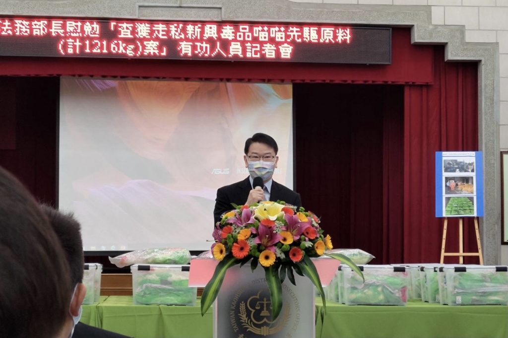法務部調查局航業調查處高雄調查站(下稱「航高站」)與財政部關務署高雄關、保安警察第三總隊第二大隊、高雄市政府警察局左營分局、前鎮分局、高雄港務警察總隊等單位,在臺灣高雄地方檢察署緝毒專組林俊傑主任檢察官、任亭檢察官、張貽琮檢察官共同指揮下組成專案組,先於110年11月在高雄港貨櫃碼頭鎖定自中國大陸地區以工業用品硫酸鋇名義進口散裝櫃,查獲10個鐵桶內夾藏第四級毒品「2-溴-4-甲基苯丙酮」(係製造第三級毒品「喵喵」毒品咖啡包之原料),毛重達500公斤,隨後於12月1日逮捕前來接貨之劉姓主嫌;專案組再接再厲鎖定另由中國大陸地區進口來臺之化學原料聚合硫酸鐵貨櫃,經開櫃檢驗再查獲夾藏第四級毒品「2-溴-4-甲基苯丙酮」100包,毛重達716公斤,並於12月16日循線在新竹地區拘提接貨之鍾姓嫌犯到案,二案共計查獲第四級毒品「2-溴-4-甲基苯丙酮」總重量高達1,216公斤,為自去(110)年迄今疫情期間查獲數量最龐大之毒品案件,有效防堵毒梟欲利用查緝機關投入防疫工作之際,走私原料再行製造毒品於年節期間販售牟利之不法行為。