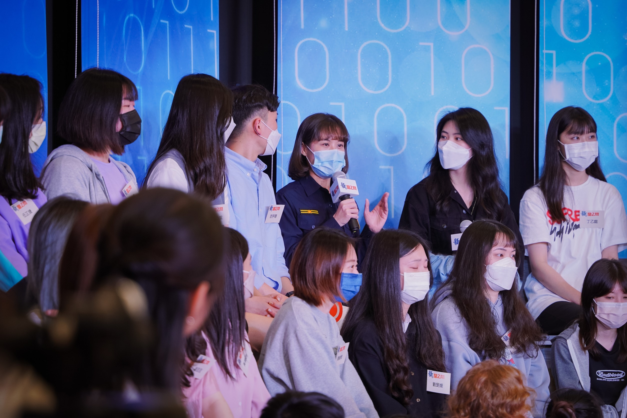 圖片說明:世新大學特邀請曾擔任學生電台主播的萬芳所長陳以雯參與「新聞之間」節目錄製。(記者趙靜姸翻攝)