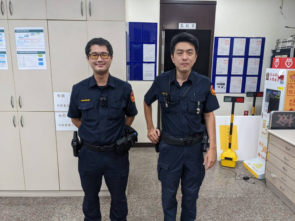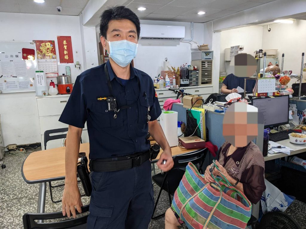 北投分局石牌派出所警員陳英昱、周彥齊於日前15時許擔服取締違規勤務時,接獲值班通報,一位姓龔姓民眾急忙跑至派出所表示其母親周婦(96歲)外出未歸,在如此炎炎夏日,非常擔心母親的安危,陳、周二員接獲通報後不敢怠慢,立即至報案人住家附近及周婦可能出沒地點展開地毯式搜尋,最後發現周婦疑因天氣太熱似有中暑脫水現象,一個人坐在馬路邊休息,員警立馬將周婦帶至附近好心店家吹冷氣並補充水分,隨後通知龔民前來接其返家。
