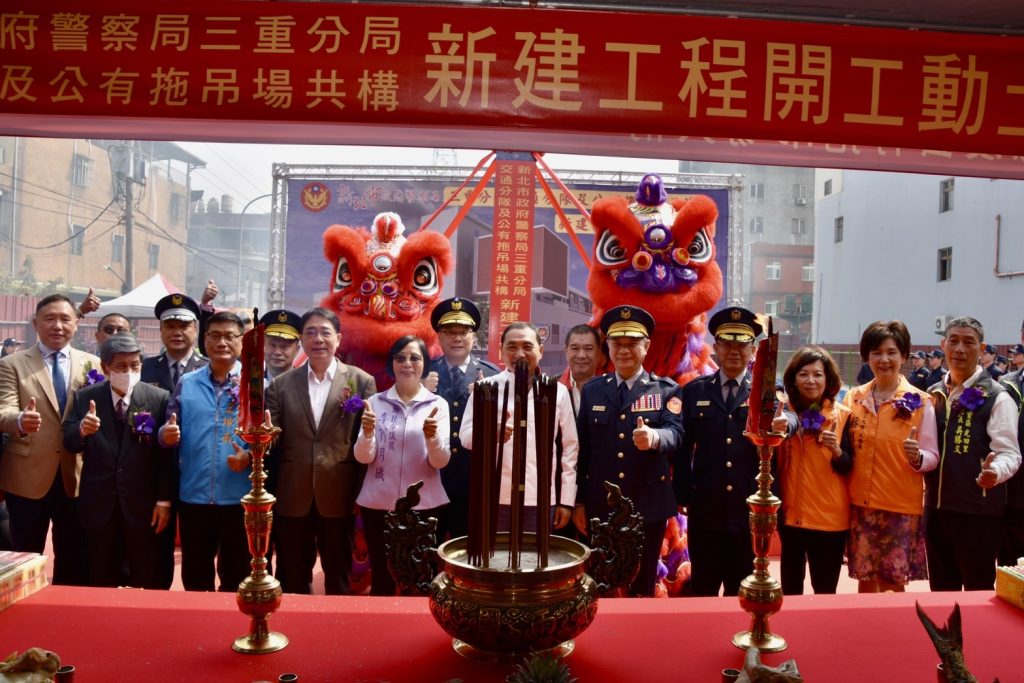 新北市警局三重分局交通分隊座落在三重區光復路上,是間二層樓的建築,目前有五十人使用,經考量建築材料老化,外觀已呈現老舊斑駁現象及未來轄區人口數與交通的需求漸增,因此新北市政府評估後,在三重區中興北街186-1號重建一棟新的辦公廳舍,並於今(17)日上午10由市長侯友宜親自主持動土典禮,警察局長廖訓誠、三重區長王坤南、三重分局長張國哲、各級民意代表、協勤民力及所轄內里長等共同出席。