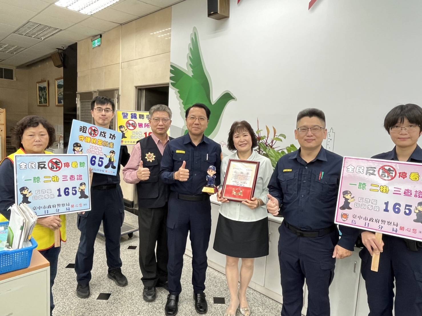 中市警烏日分局長尤啓南對金融機構行員之敏銳度表示激賞,於昨(20)日上午特地前往前揭金融機構,致贈感謝狀、警察寶寶獎盃及禮券,感謝行員對治安之貢獻,行員紛紛直呼「烏日分局對阻詐如此重視,還特別加碼發放獎盃,會更積極發現詐騙徵候並通報攔阻」。