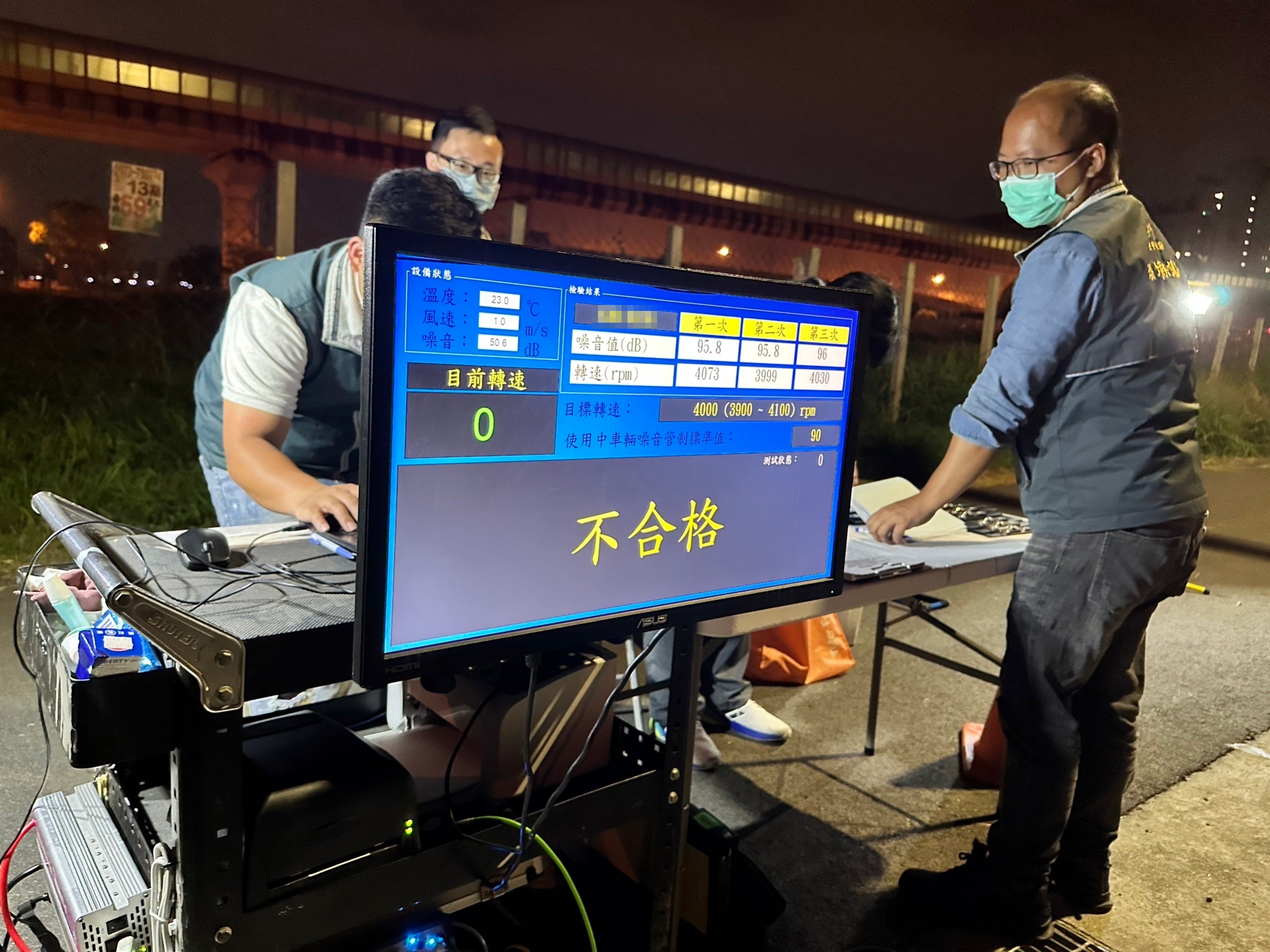 警方今日指出,日前聯合稽查取締短短2小時內共攔檢11輛,8輛噪音不合格,其中更有2輛為二次改裝排氣管;噪音不合格車輛將依噪音管制法第26條規定告發,共計罰鍰新臺幣2萬7,600元,成果顯著。此外中市警四分局分析轄內噪音車出沒時地,運用移動式測照輔以攝影機,在夜間規劃「靜城專案」勤務取締超速及蒐證疑似噪音改裝車輛,蒐證後上傳環保署噪音車輛檢舉網,由主管機關召回檢驗,專案期間已積極攔查蒐證並通報達272件。