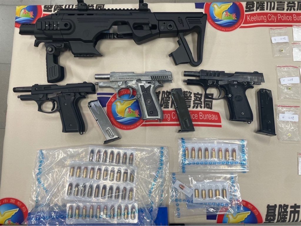 第二分局獲報轄內譚姓男子持擁槍毒,案經數月蒐證,掌握具體犯罪事證,報請基隆地檢署檢察官周靖婷指揮偵辦,並會同基隆市警察局刑警大隊、少年隊及第四分局於同(6)月12日部署警力,持臺灣基隆地方法院核發搜索票執行緝捕行動,並趁譚嫌外出之際,迅雷不及掩耳壓制譚嫌,並於住家等處先後查獲仿金牛座改造槍枝3把、子彈45發、海洛因49包、安非他命16包、電子磅秤、吸食器及注射針筒等證物,另於犯嫌住處查獲通緝犯2名,全案依槍砲彈藥刀械管制條例及毒品危害防制條例等罪嫌移送基隆地方檢察署偵辦,其中譚嫌遭基隆地方法院裁定羈押。