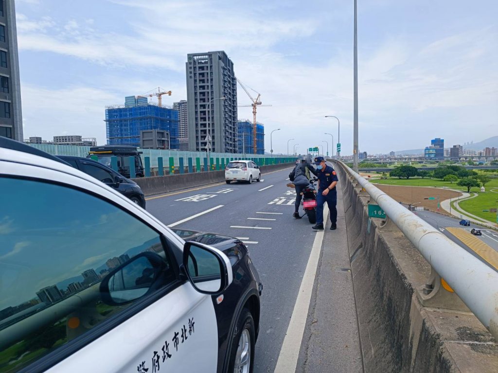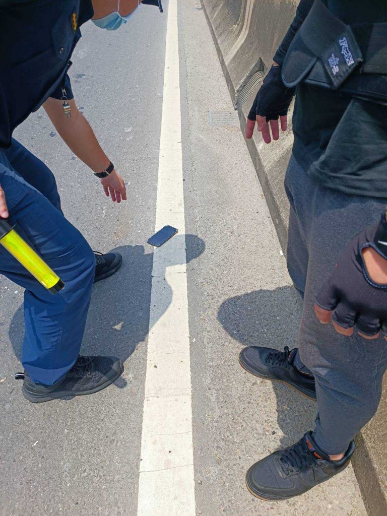 新北市警局三重分局交通分隊小隊長鄒源昌、警員程樂強日前執行巡邏勤務,行經疏洪西路閘道口時,一名男子站在路旁舞著雙手求援,稱其手機原本放置於大型重機車手機架上,突然從架上掉落至車道上,因當時車流量大且車速快,緊急下交流道,不敢停車取回手機,適逢巡邏警車經過,於是立即向警察請求協助。