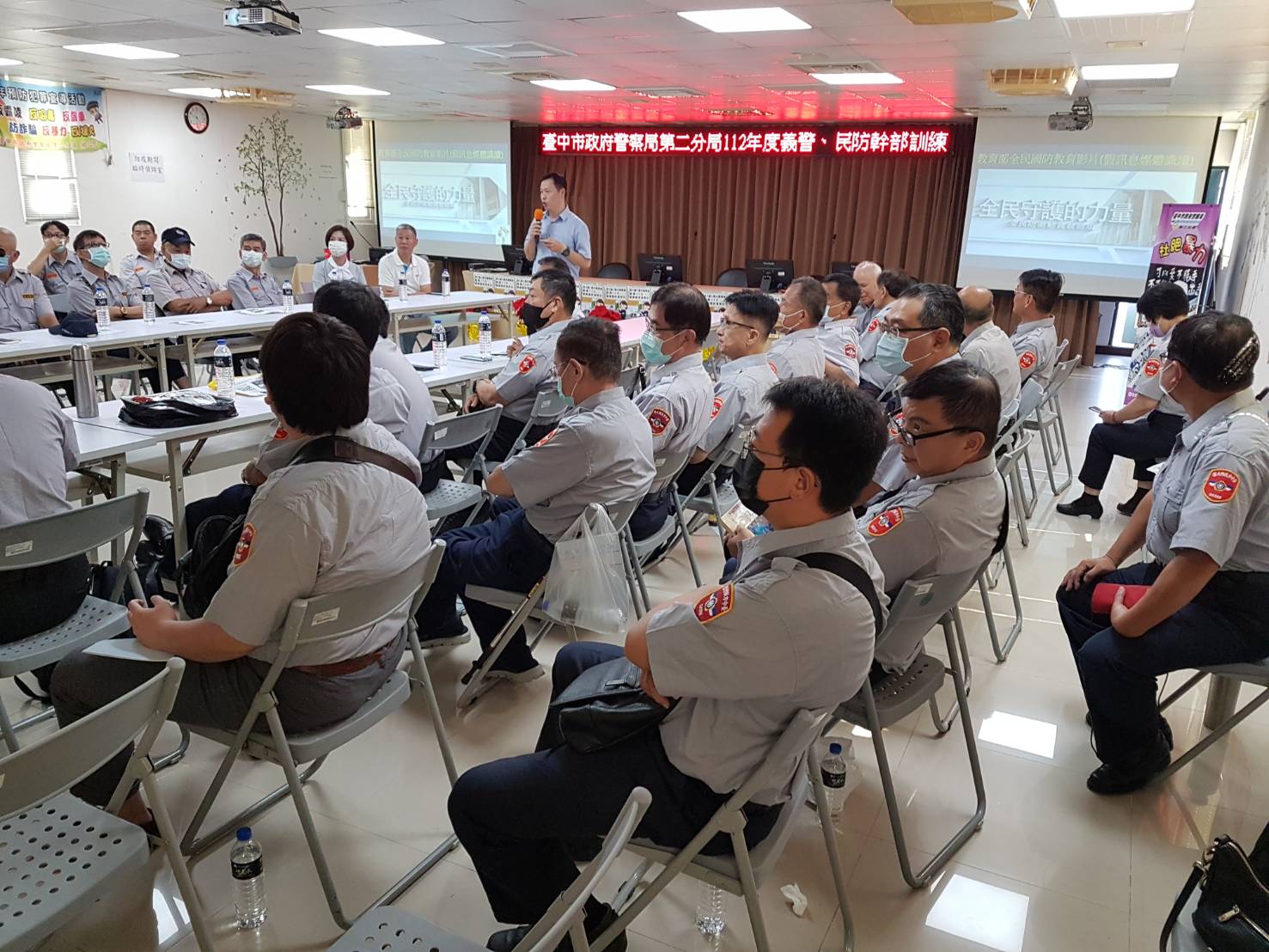 中市警二分局指出,本次訓練配合政府國防措施,落實全民防衛、國防動員觀念,規劃了「全民國防教育與國際局勢」、「戰時社會治安防護要領」、「防空避難設施管理維護」等內容 ,並安排「傷患自救互救技術」、「領導統御要領」、「溝通協調與團隊建立」等課程加強個人緊急救護及領導協調能力;此外,更因應警政署民力招募多元年輕化的要求,由中市警察局特派陳亦豐警務員向大家溝通招募原則及注意事項,希望廣泛邀請年滿18歲以上、40歲以下,具備純正思想、良好品讀、熱心公益之男女,加入義警、民防團隊,提升警民合作,一起成為維繫社會安定不可或缺的重要力量。
