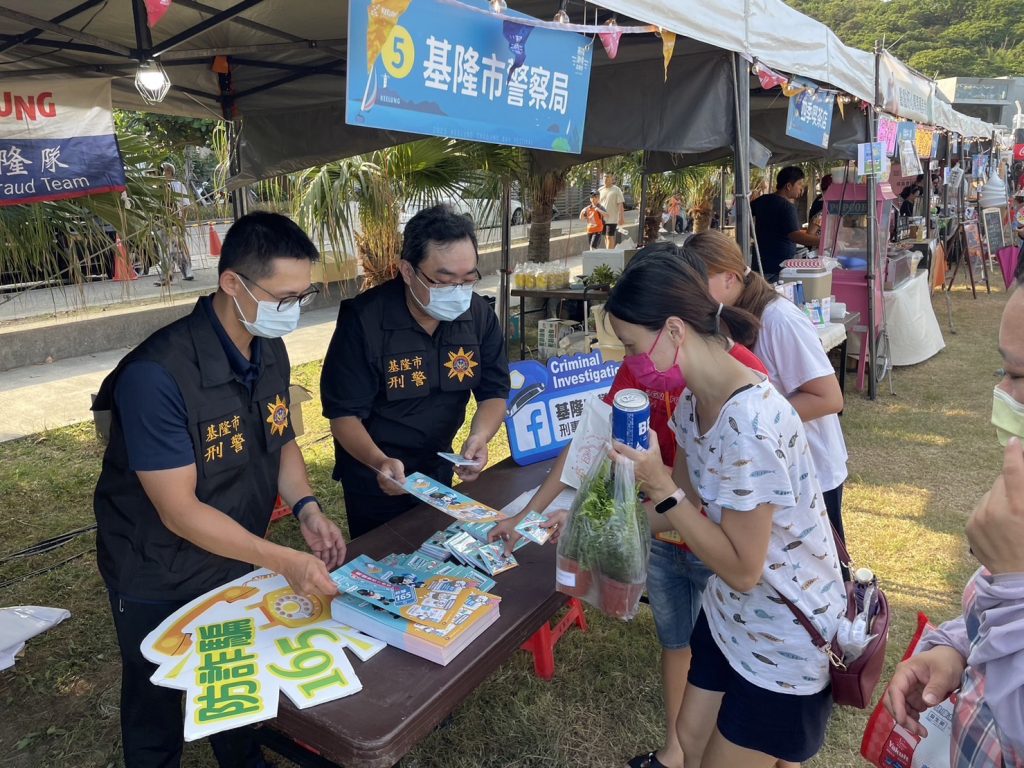 基隆市警察局為加深民眾防詐、反毒觀念,由刑警大隊、少年隊及第二分局派員向現場民眾進行識詐、反毒宣導,針對當今「假投資」、「假網拍」、「假交友」等高發詐騙手法,藉由日前imB投資詐騙為案例,仔細解說詐騙集團「保證獲利、穩賺不賠」等各種話術,避免民眾陷入詐騙風險;另正值暑假期間,亦向現場青少年宣導新興毒品與(電子)菸害等,並準備精美可愛的宣導品及反詐警語文宣與民眾互動,在放鬆的夜晚,提醒民眾防詐、反毒知識。
