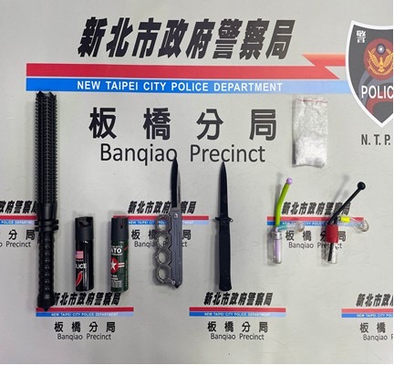 警方現場依妨害自由、傷害現行犯將沈0薇、王0宇、邱0珉、呂0瑞等3男1女逮捕,並於附帶搜索時,查扣吸食器1組、毒品安非他命1包、辣椒水1瓶、型手電筒1把、手指虎1個、折疊刀1把。