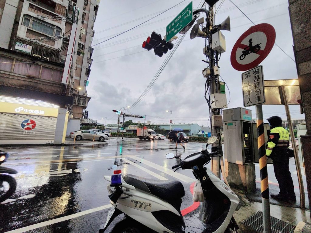 「海葵颱風」帶來間歇性風雨持續影響全台,新北市政府宣布今(4)日正常上班上課,為因應週一上班上學首日龐大車流,蘆洲分局規劃動員近百名警、民力,投入轄區蘆洲、五股、八里地區易壅塞路(段)口交通疏導工作,全力維持用路人交通安全順暢。