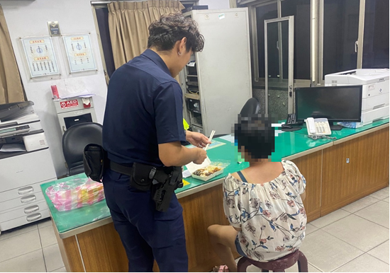 蔡員趕忙上前安撫女子,帶其情緒平穩後,駕駛巡邏車載回派出所休憩並提供熱食充飢,同時另一位同仁洪員則以輕鬆、關懷的聊天方式,營照舒適感使雙方有所共鳴,進而讓對方多說些自己的資訊,經過15分鐘後,使用警政聯網查詢比對,成功地確認女子身分姓李,年齡39歲,家住蘆洲,洪員立即聯繫家屬,家屬表示因為在上班,因此無法至所將李女帶返家,於是蔡員2人便將李女載回蘆洲住家,家屬對於警方同理心及積極任事,深表感謝。