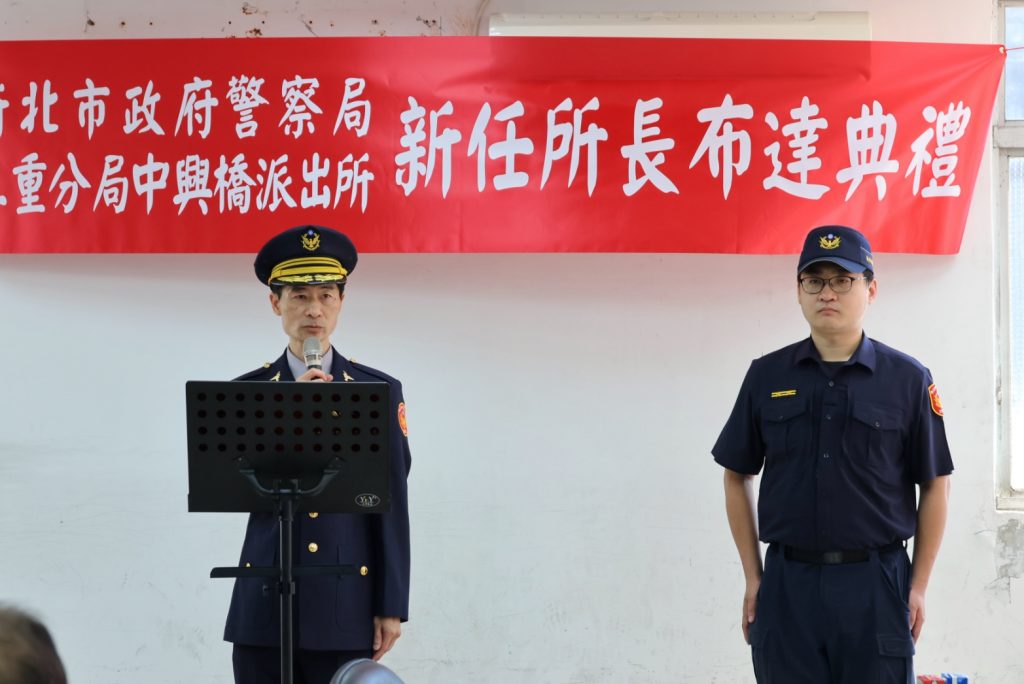 新北市政府警察局三重分局所屬三重、中興橋派出所布達儀式,由副分局長施嘉文親自主持於今(25)日上午依序舉行布達儀式,並邀請里長、義警、巡守隊、民防、志工、警友會及地方各界代表參加,場面熱絡,期許新任所長在工作上表現出色,秉持著「警民一家親」的良好互動。