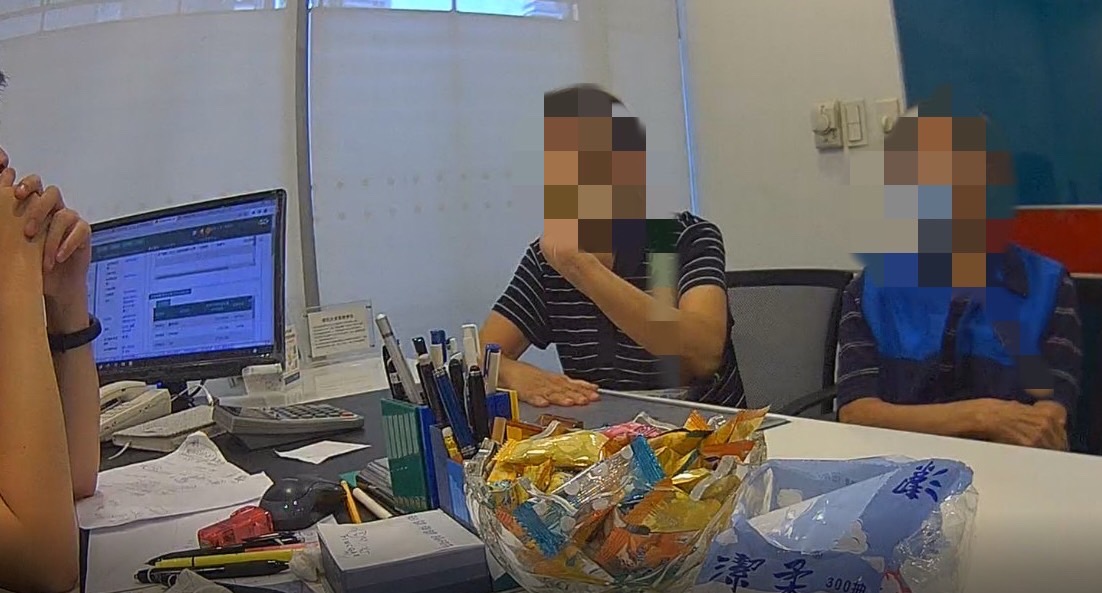 廖、李兩位警員以善意的方式耐心地向馬婦解釋,揭示了詐騙集團的手法,讓她明白真相。(圖/記者福祐翻攝)