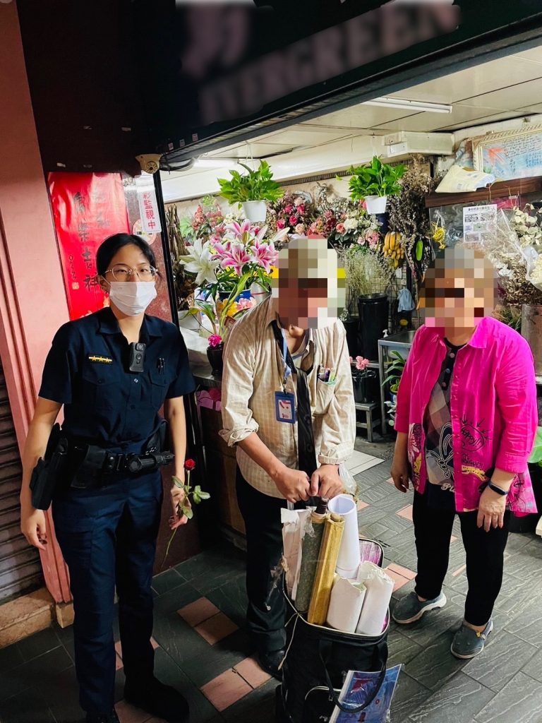 蘆洲分局三民所所長王明堂、警員朱家玄於10日19時許執行巡邏勤務,至蘆洲捷運站進行巡簽時,見一老翁身體不適倒臥於1號出口立即上前關心,並通知救護人員到場協助,雖老翁表示不需協助,所長擔心老翁安全指派警員朱家玄、何品萱載送老翁返家。