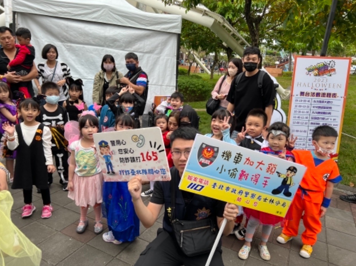為建立兒童危機意識防範被害,士林警派出最萌警察大頭娃娃與當日變裝民眾互動宣導犯罪預防,結合交通安全、婦幼安全宣導及傳達反賄選、反貪廉政觀念,及識詐有獎徵答活動,藉以達提升自保防禦力之目的,活動中充滿歡樂氛圍,也深具教育意味,獲民眾熱烈歡迎。