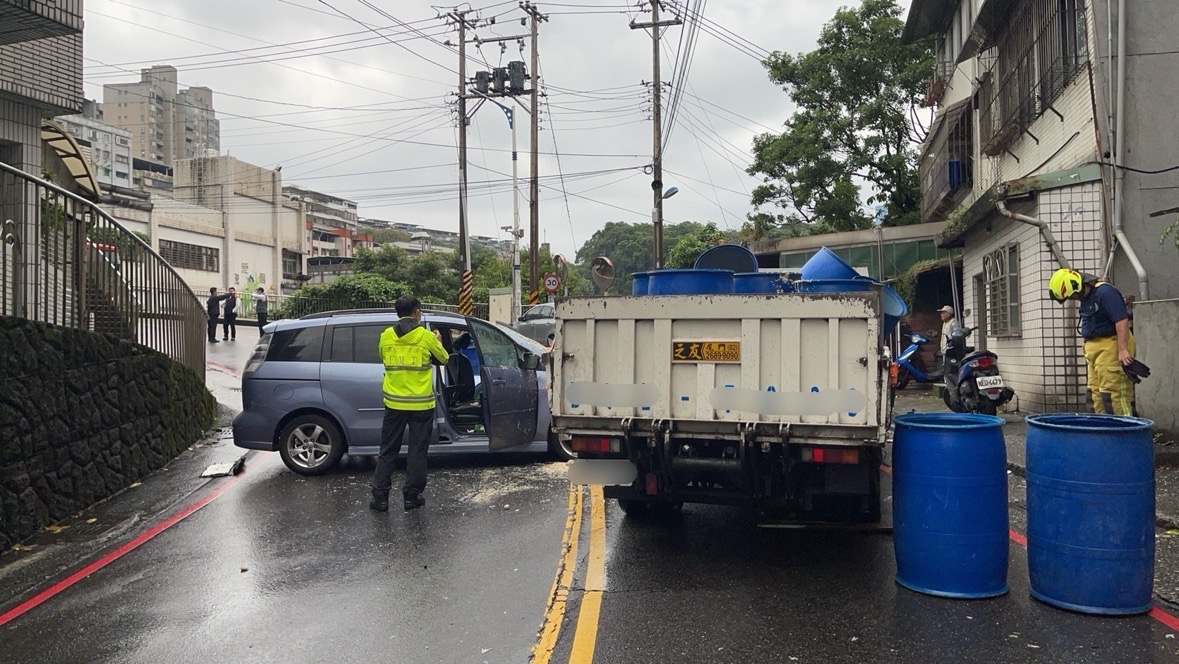 員警到場了解為28歲李女駕駛自小客車搭載2名乘客,於東光路下坡往東信路方向,疑煞車失靈,於彎道不慎擦撞對向錢姓男子所駕駛之水肥車,其中4名駕駛及乘客均有不同部位擦挫傷,由救護人員送至衛福部基隆醫院就醫,警方於現場持續疏導管制交通,交通隊進行後續事故處理程序,雙方駕駛人經呼氣酒精測試,尚無酒精反應,詳細肇事原因尚待釐清,而事故車輛已排除完畢,現場交通恢復順暢。