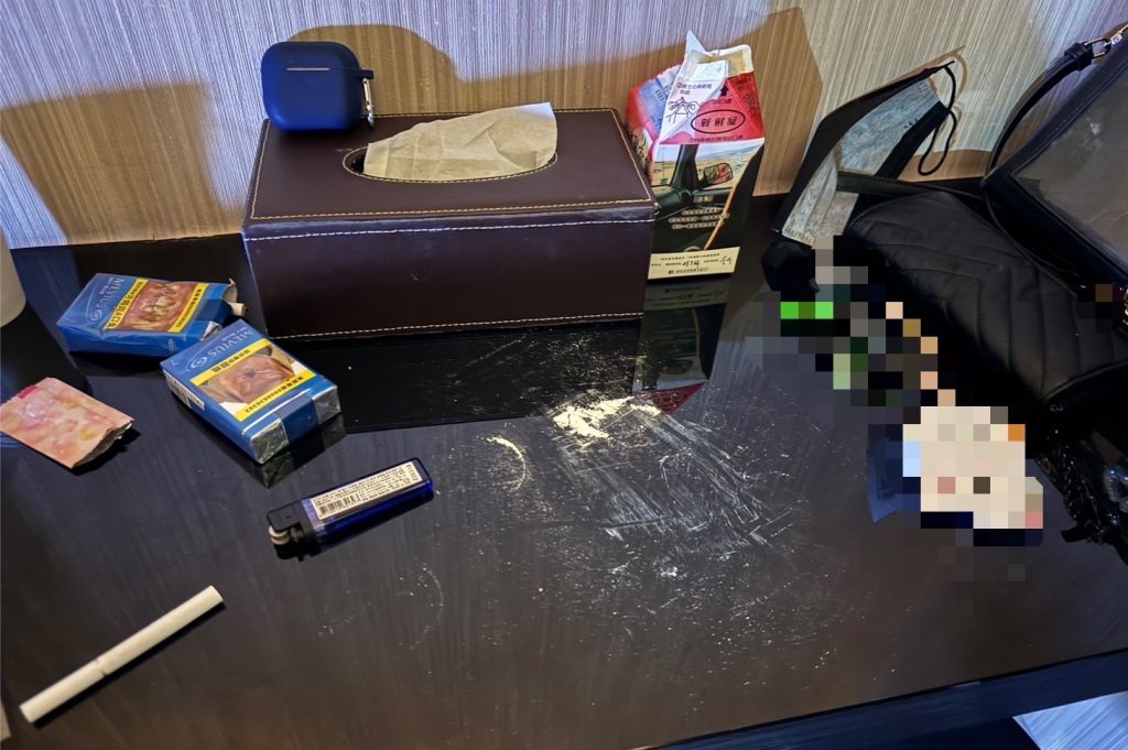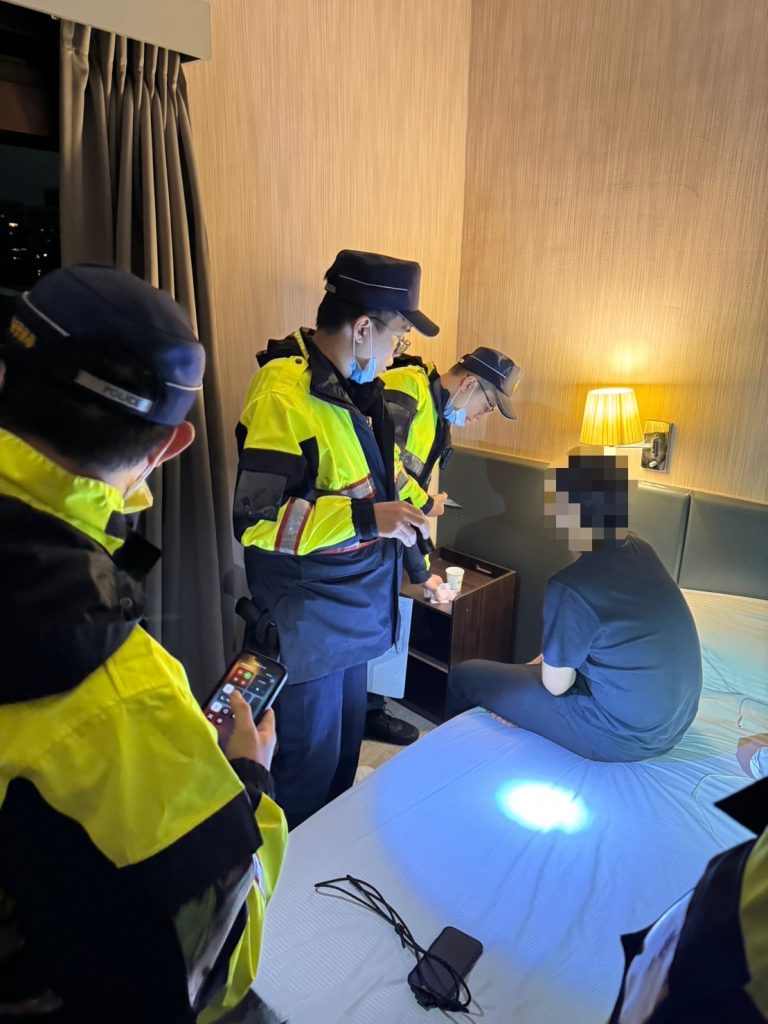 三重警分局本次針對轄內13處出入較複雜之場所實施臨檢,透過優勢警力的展現主動查緝不法行為。而其中員警在臨檢某旅館時,其中一間房客應聲後卻遲遲不開門。經員警耐心等候,在房客開門的瞬間,員警迎面而來一股濃烈的刺鼻味,此時帶班所長靈敏的鼻子已察覺異樣,卻不動聲色請房客報上身分證字號確認身分。果然,當妙齡女房客報出一串數字後,員警定眼一看,唉呦!是我眼睛業障重嗎?怎麼資料顯示的女子已是中年婦人。當下請該女子拿下口罩確認樣貌,女子才突然改口稱不小心報錯母親證號。一連串的可疑行為讓所長眉頭一皺,覺得事情並不單純。果然,在床頭的杯子中又聞到了可疑的味道,定睛一看,更在桌上看到明顯的白色粉末。犯嫌見已難逃法網,只好乖乖坦承身上有第三級毒品愷他命2包(總毛重1公克)、卡西酮咖啡包5包(總毛重12.1公克),當場依毒品危害防制條例逮捕,依法究辦。