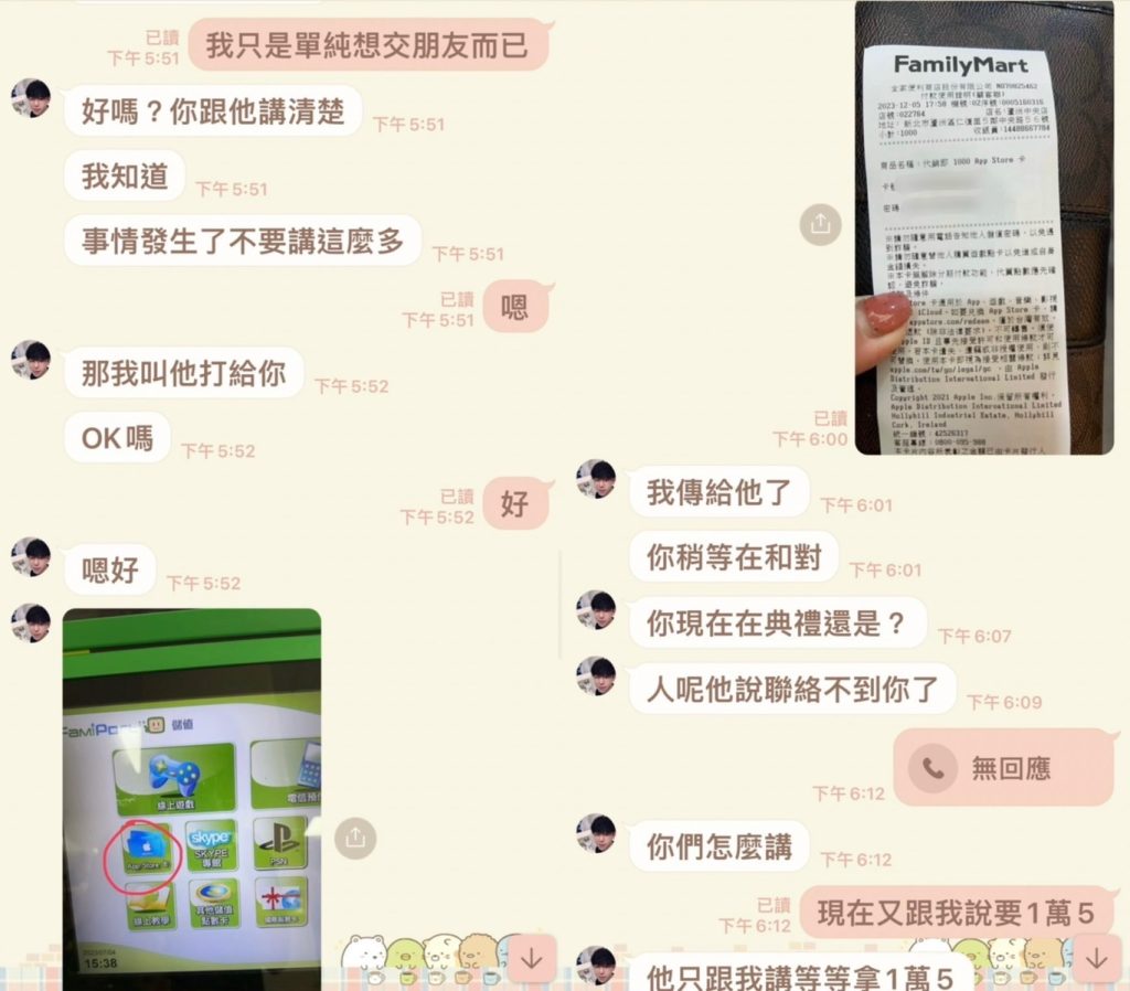 該名女子於「抖音」社交平台遇一陌生男子主動私訊搭訕,表示可以找時間約見面交朋友,並要求女子加入其通訊軟體LINE帳號進行聯繫。男子立即表示本身職業為「男模」,只要半小時即可到達當事人指定地點,隨後有一自稱公司經理男子撥電話給被害人,表示要支付3萬元保證金才可讓兩人見面,並多次傳送恐嚇訊息施壓,要求被害人至超商購買點數支付。