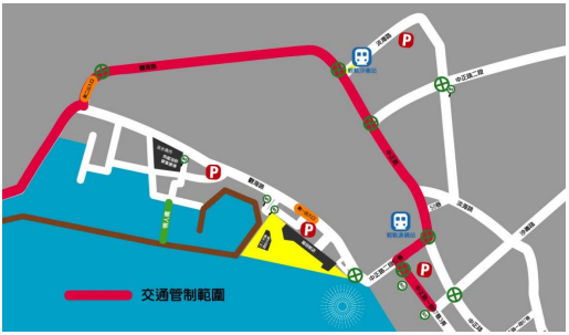 閃耀新北圈起1314跨河煙火於112年12月31日20時24分,在「淡江大橋」、「淡水觀海長堤」、「八里水上運動中心」兩岸三地,施放長達13分14秒煙火活動,預估吸引約5萬人以上前往觀賞,並請多利用捷運淡水線紅樹林站轉淡水輕軌至漁人碼頭站、接駁車等大眾運輸工具前往,為維護交通秩序,漁人碼頭港區停車場第一出入口(淡水區中正路二段51巷)自16時管制車輛進入,改道中正路2段、觀海路至港區停車場第二出入口進出,散場則由觀海路→淡海路→中正路→濱海路→淡金路離開,請配合現場管制人員引導。