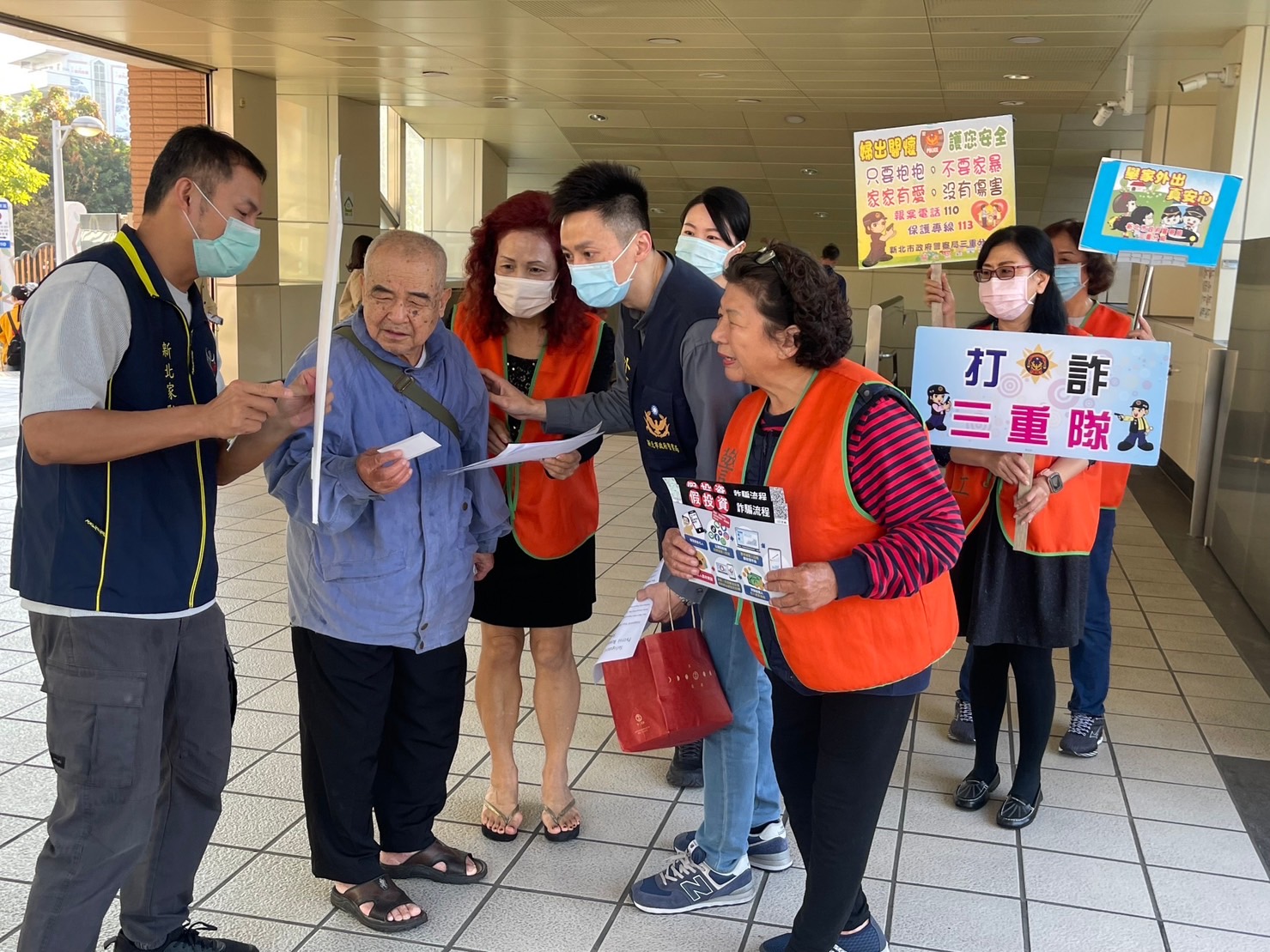 三重警分局除利用大型電子看板宣導外,又製作宣導標語,並結合警察志工利用上班時間,至人潮多的三重國小捷運站加強宣導,鼓勵民眾申請。三重分局也特別準備多國語言的申請書,由外事警察人員透過口頭說面方式宣導外出居家安全維護的服務,警方將會規劃加強巡邏勤務密度,增加住家周邊安全維護,好讓外國僑民在春節連假返國期間,可以安心返國度假。現場另外由員警宣導最新詐騙手法,提醒民眾近期投資詐騙的手法,以及性騷擾、性侵害等婦幼安全的重要性。