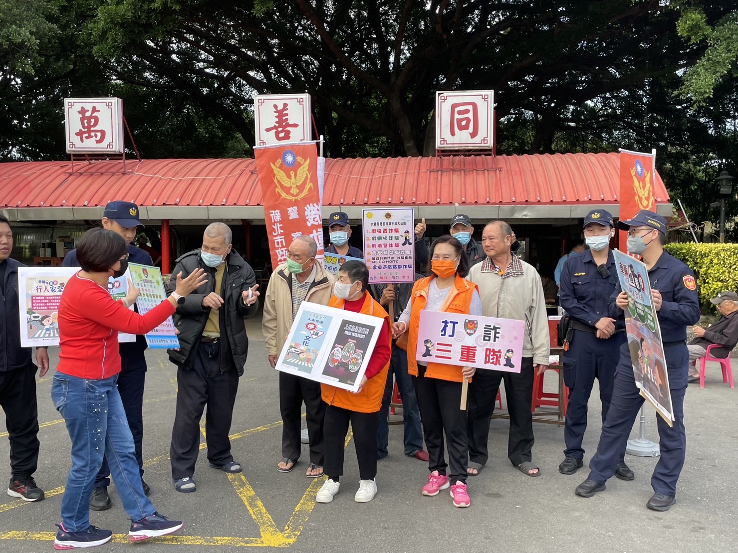 現場員警製作宣導標語,宣導犯罪預防、反詐騙、反竊盜、反毒品的觀念及性騷擾、兒少性剝削、性侵害等婦幼安全的重要,透過警民合作,讓民眾更加了解詐騙新手法及婦幼的安全性等重點傳達給民眾。