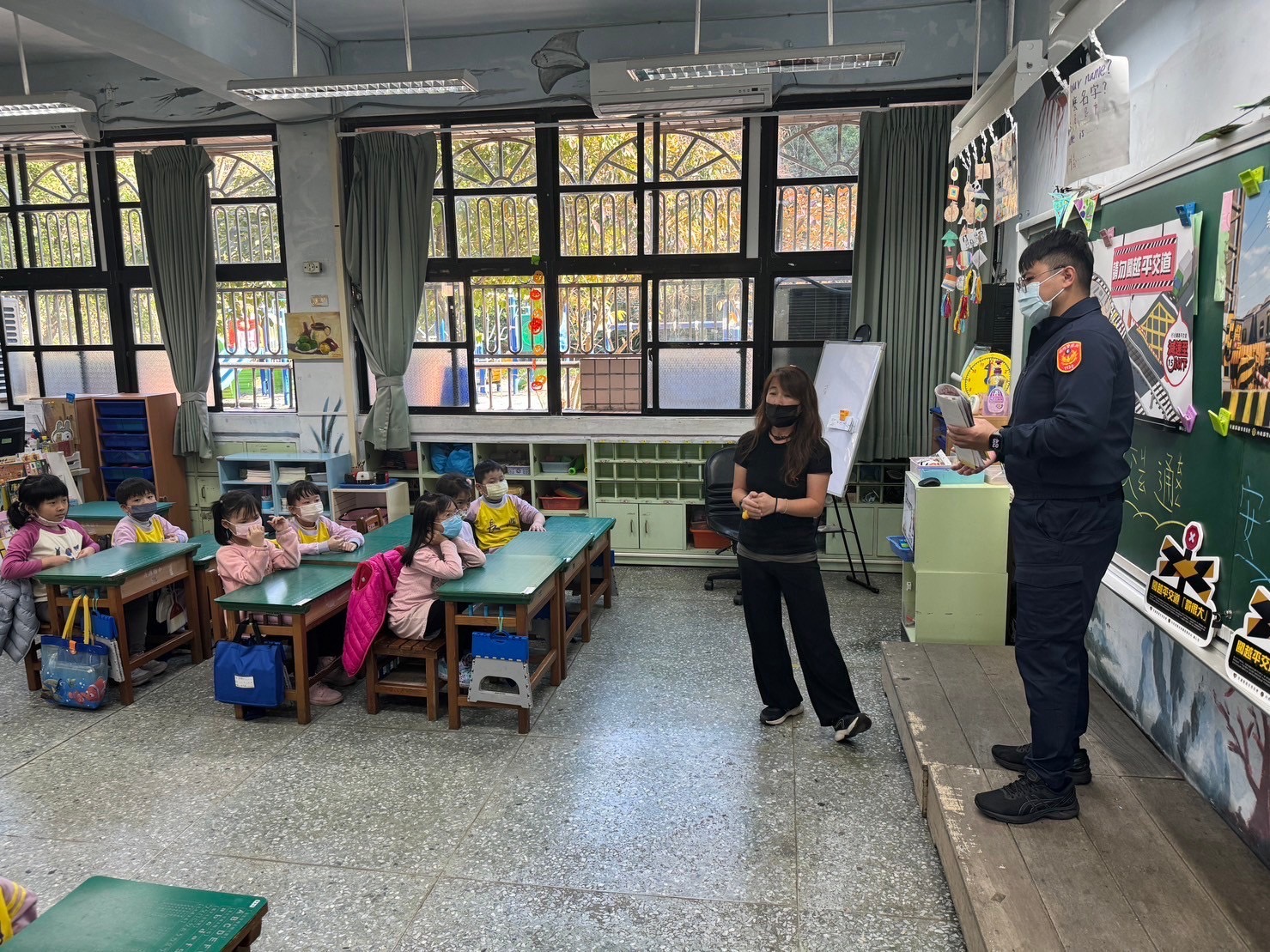 藉由前進國小向孩童宣導交通安全重要性,孩童回到家中也可以和家人分享觀念,大家一起共同守護台灣的交通安全。