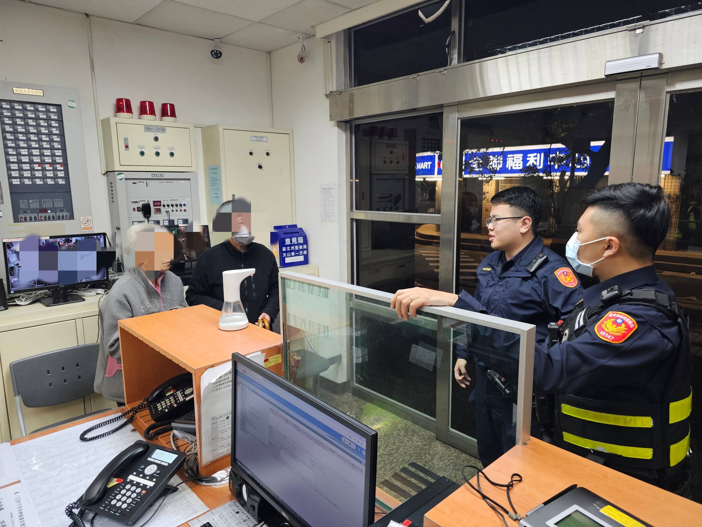 文山第一分局木新派出所警員洪一民、許聖忠等2員,日前執行深夜巡邏勤務時,接獲超商店員報案,疑似有一名迷途老婦徘徊在店內。