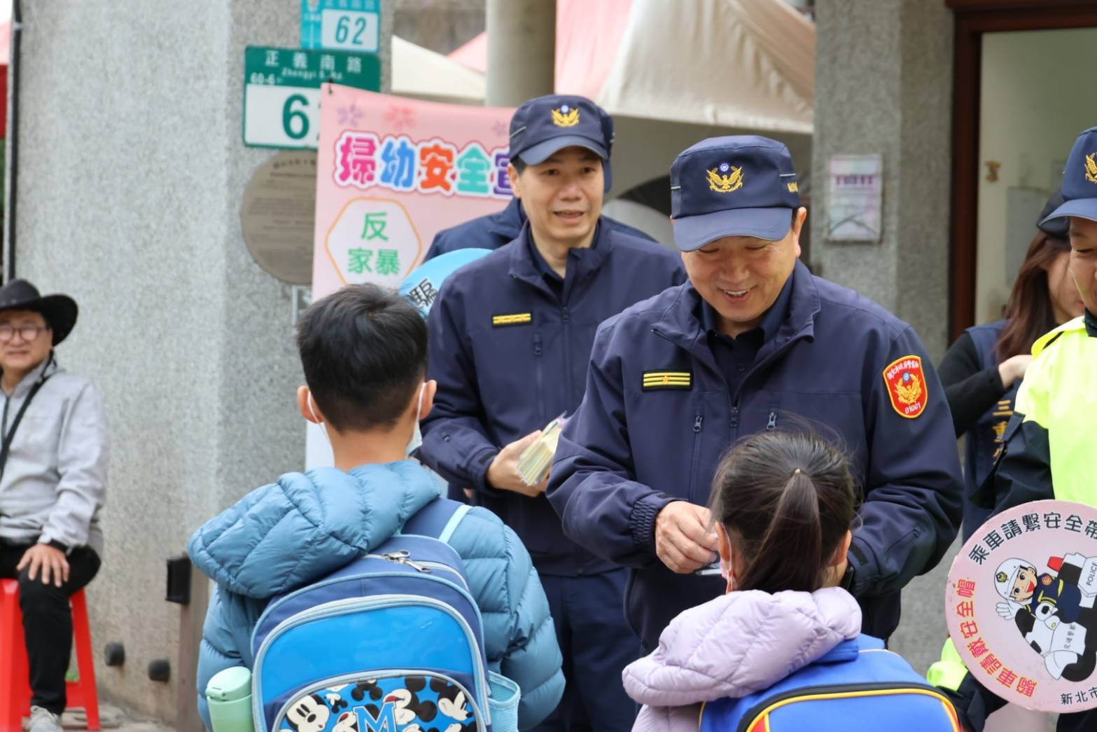 三重警分局透過大數據分析,針對轄區學童眾多或交通要衝之學校逐一因地制宜,編排護童勤務,在上、下學時段保護學生安全,且配合學校需求,實地觀察各學校上、放學時段,有無危害學童安全危險因子等易受害風險,綜合評估向學校反映並即時疏導校園周邊交通秩序,除此之外,開學首日分局長黃南山親自率隊於校門口發放宣導品,進行婦幼、交通安全、反毒、識詐打詐及犯罪預防等多面向宣導作為,用以提醒孩童及家長平時應提高警覺及應變能力,強化學童及家長防範犯罪意識,且責由各轄區派出所正、副主管督同交通崗疏導人員於上午交通尖峰時段7時至8時在校門口及周邊幹道實施機動交通疏導及路況查報。