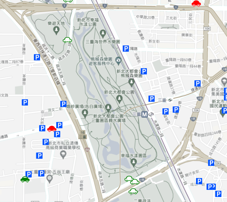 往年參觀燈會民眾多駕車前往,但短時間的大量車潮集中,不但影響了周邊交通順暢,同時因車位難求,反而花費了更多時間。因此,三重分局除針對水漾路、疏洪十六路加強疏導及取締非因上下人客的違規停車外,同時請義交於周邊重要路口協助引導至其他周邊停車場,並且協調公有停車場於滿場時掛牌告知後方車輛避免排隊。警方呼籲會場周邊有U-Bike、公車、雙捷運等大眾交通工具,相當便捷,請民眾多加利用,以節省尋找停車位的時間;如果需自行開車前往的民眾,也可利用「新北市公共停車場資訊查詢系統」查詢合法的停車空間。