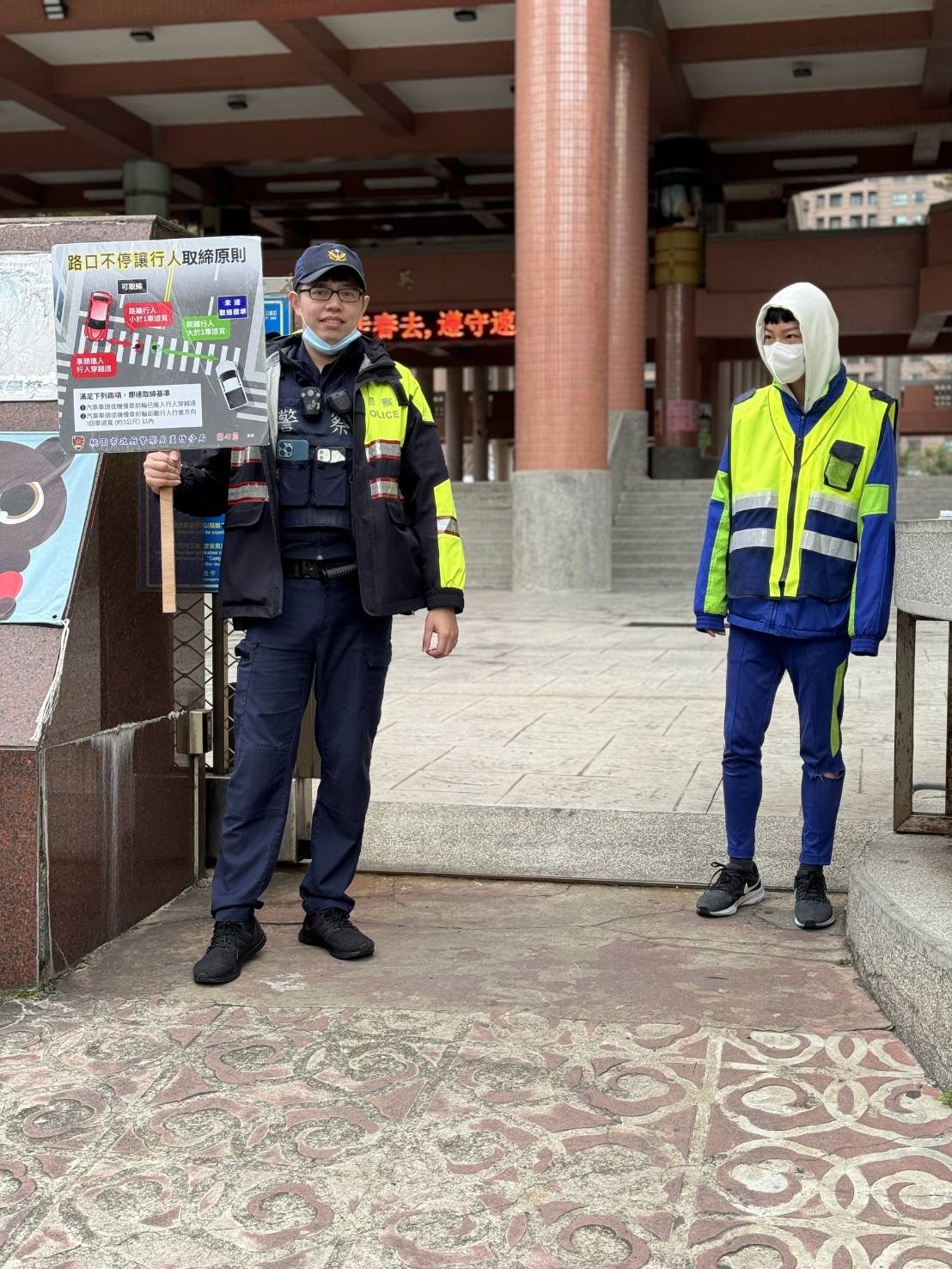 為維護學童交通安全和校園安全,警員們在上學的時段及路段,加派警力透過交通疏導,及守望的方式來守護學童安全。同時也針對「路口不停讓、行人違規」等加強宣導,由員警手持交通安全宣導標語,讓家長送學童上課的同時,增進交通守法觀念。