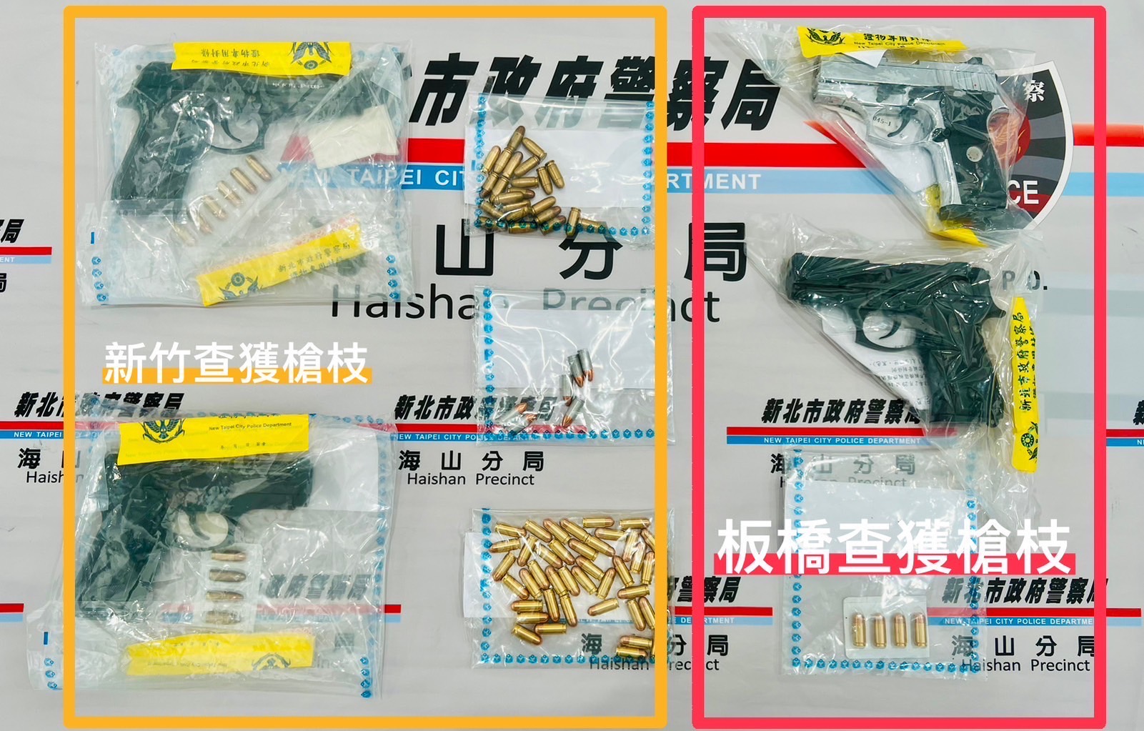 新北市政府警察局海山分局日前偵辦毒品案件時,抽絲剝繭發現居住在新竹縣的邱姓男子疑似有從事販賣改造槍枝的行為,經過數月的蒐證調查,見時機成熟,於2月29日持搜索票,一舉破獲槍枝及改造槍械工廠案。