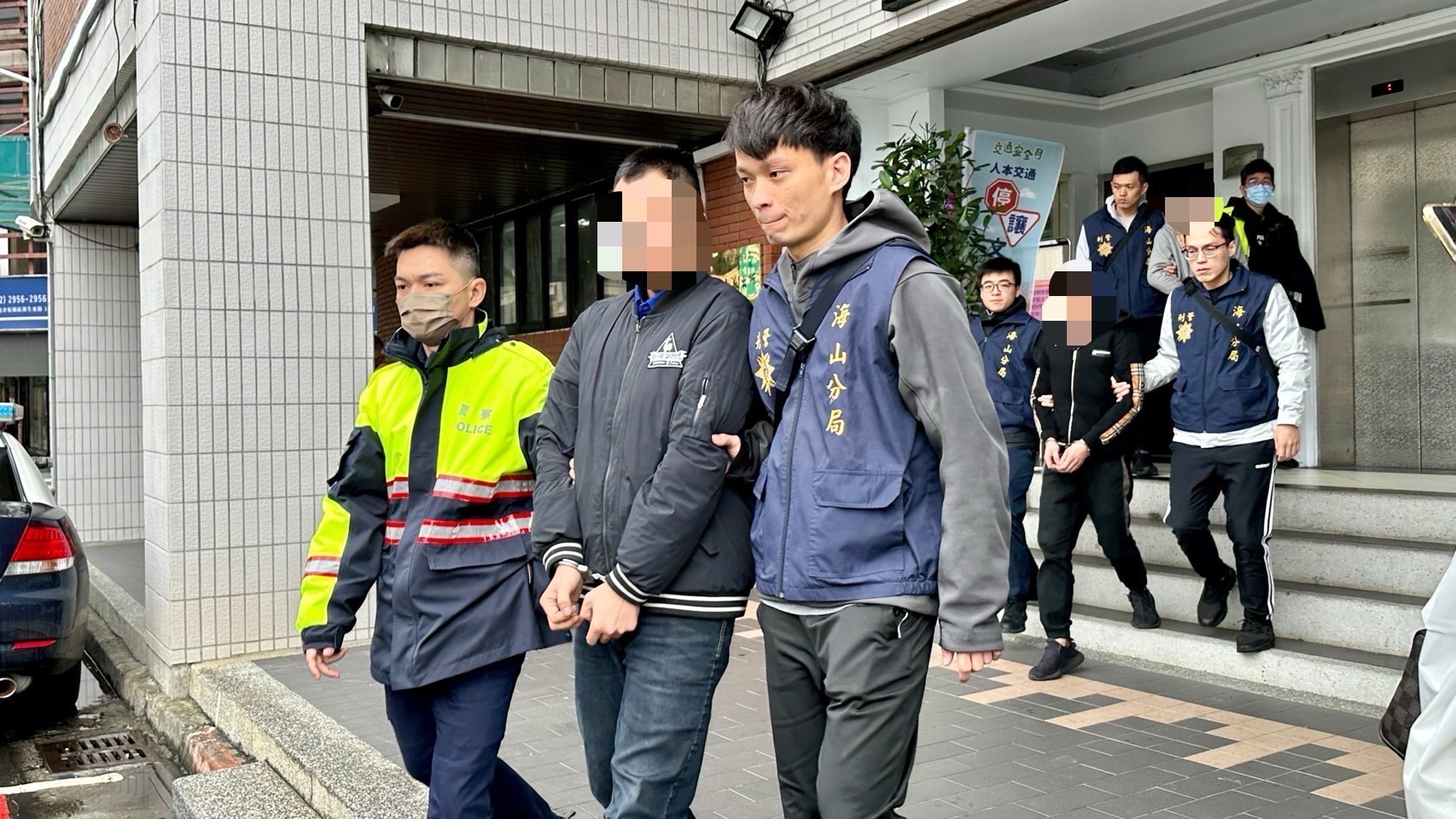 海山分局長期佈線得知邱姓男子將於2月29日下午到新北市立殯儀館進行槍枝交易,便由偵查隊及埔墘派出所組成專案小組至殯儀館的停車場埋伏,見邱男駕駛自小客車抵達,立即出示搜索票,在其袋內查扣槍枝2把、彈匣及子彈。而車內除了邱男,還發現其友人林男為臺灣新竹地方檢察署發布之通緝犯,車內同時查獲愷他命毒品及K菸,當場依違反槍砲彈藥刀械管制條例及毒品危害防制條例將2人逮捕帶回偵辦。