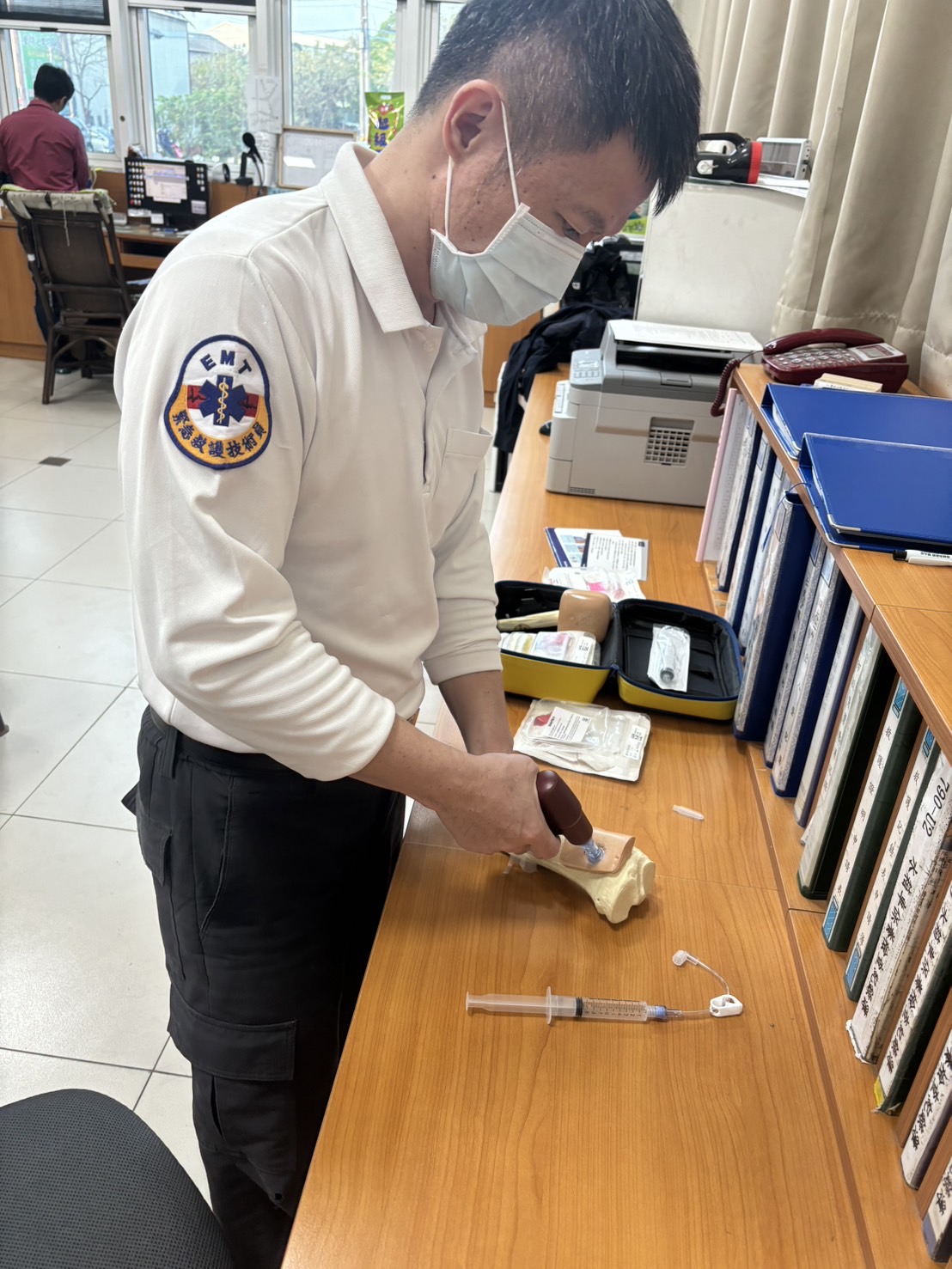 高雄市消防局日前接獲報案,一名訪客在朋友家中突然昏迷。該局仁武分隊的高級救護技術員林緯嵐和緊急救護技術員王孟凡立即出動,發現患者為OHCA(到院前心肺功能停止),立即進行CPR和使用AED,並因患者血管彈性不佳,難以建立周邊靜脈管路,因此改為使用「骨針」技術,並給予強心針等急救藥物。