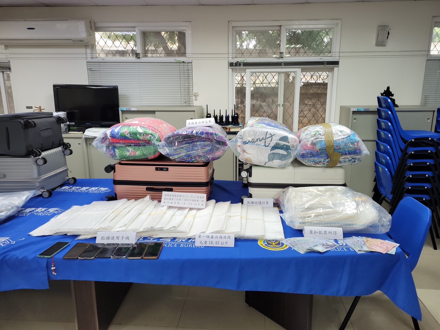 航空警察局、法務部調查局與財政部關務署臺北關在去年12月間,查獲4名泰國籍入境旅客,以託運行李夾藏36.644公斤的第一級毒品海洛因,市值高達新臺幣上億元,遂共同成立專案小組報請臺灣桃園地方檢察署檢察官指揮偵辦。