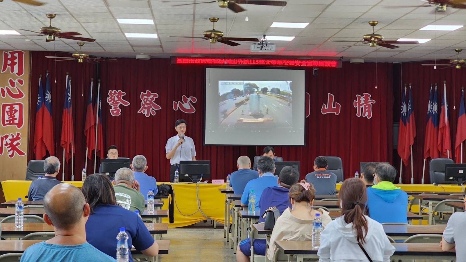 會中由該分局首先報告市長施政重點,再針對各重要道路特性、歷年發生交通事故件數及違規類型,透過交通斑點圖與10大易肇事路段(口),提醒大型重車駕駛行經該路段,要小心行車減速慢行;另外宣導大型重車交通安全提示,內容包括「加裝行車視野輔助系統」、「駕駛安全觀念」、「速度管理」、「路權概念」、「保持安全車距」、「車輛定期保養」及「酒後不開車」等多項主題,期望由業者發揮自主管理功能,第一線提升駕駛司機安全守法效能;現場同時透過實況影片播放,加深與會者對車禍事故不良後果深刻印象。