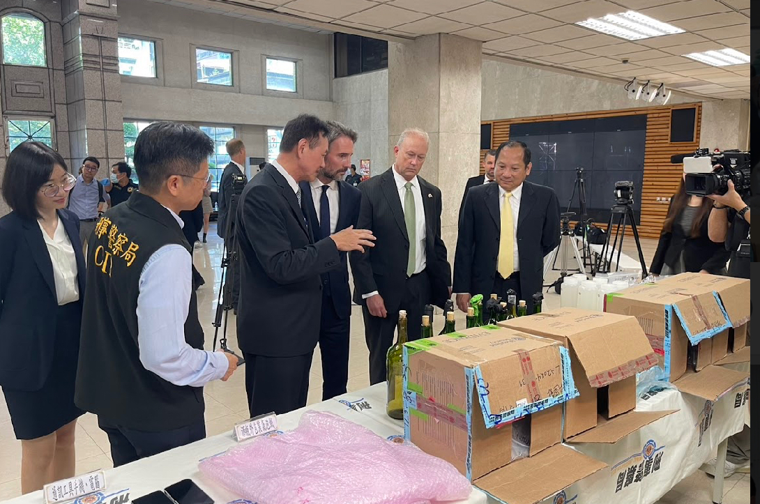 案經我國向美國司法部接洽台美司法互助並經由我國「駐洛杉磯台北經濟文化辦事處」全力協處,順利於8月間由前桃園地方檢察署承辦檢察官陳玟君率刑事局國際刑警科專案小組成員赴美國洛杉磯進行司法互助跨境取證,美方遞交我方取證團於美國境內查扣之甲基安非他命、運毒載體紅酒瓶、通訊工具手機等贓證物一批,成果豐碩,亦再度寫下我國跨境司法合作新頁。