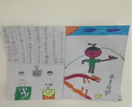 隔(18)日王童由父親陪同在心存感激下帶著親手繪製的童言童語感謝圖文祝福2位拾金不昧的大哥哥們新年快樂。王童認為2位大哥哥的表現讓他體會到端正品德所施予的影響力大大超乎自己以前認知,未來也要以他們優良的品德為榜樣幫助其他需要幫助的人,請求警方將感謝圖文轉知給2位拾金不昧的大哥哥們表達他內心滿滿的感激。警方也認同良好的品德教育確實值得受表揚與鼓勵,應小弟弟要求於20日遞交感謝函請求校方會於勉勵,以期褒揚善良之風。